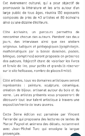 Intitulé :  Salon du livre et des arts à la ciotat