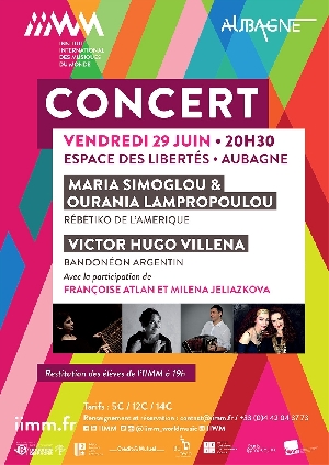 Retrouvez dès 19h tous les enseignants de l'IIMM (Institut international des musiques du monde) et leurs élèves pour découvrir le fruit de leurs travaux à l'issue d'une année de cursus et de master-classes. Cette restitution sera suivie d'un concert exceptionnel à 20h30 en présence d'artistes de renommée internationale pour une soirée riche en sonorités plurielles. |